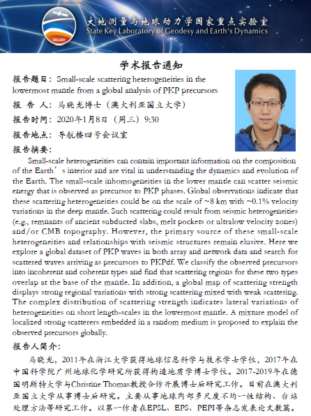 2020年PA真人国际大地测量与地球动力学国家重点实验室学术预告