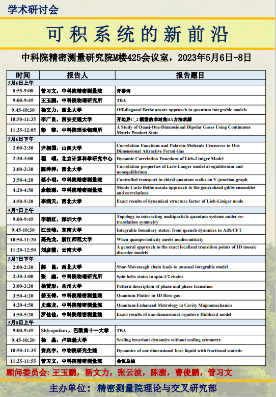 PA真人国际理论与交叉研究部学术研讨会:可积系统的新前沿