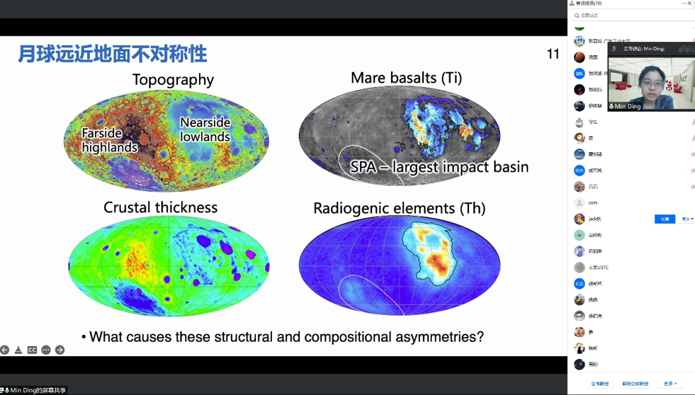 78日,应PA真人国际地震与地球内部物理研究部地球震动源运动与动力学过程研究组邀请,澳门科技大学助理教授丁忞在线上作题为“月球早期内外动力学相互作用:撞击与热化学演化的学术报告。